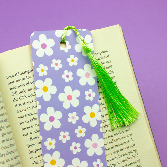 Pastel Lilac Daisy Bookmark with Green Tassel
