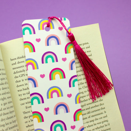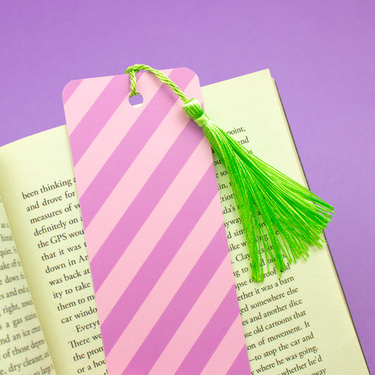 Pink and Purple Candy Striped Bookmark with Green Tassel