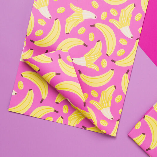 Pink and Yellow Banana Fruit Birthday Wrapping Paper