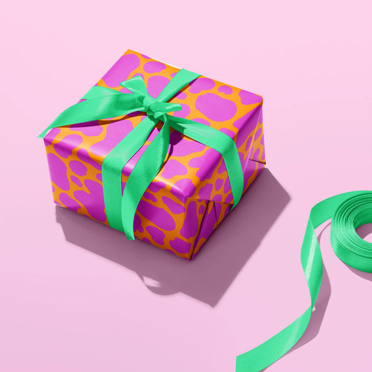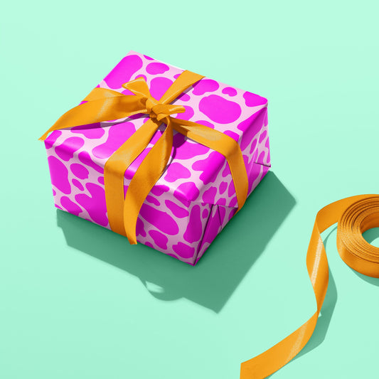 Purple and Orange Cow Print Birthday Wrapping Paper